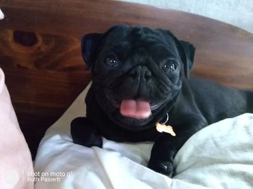 Samson was the second Pug I got. He was paired with Dalila . She was my white Pug and came from Arkansas. Anzu was their first litter. Samson is 8 years old. His partner Dalila was one of my Fur babies lost due to the house fire.